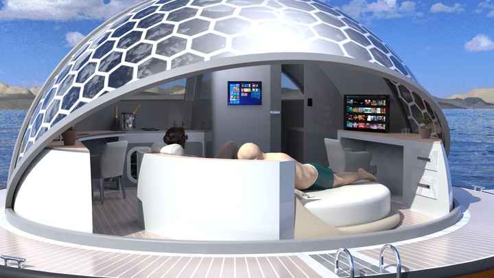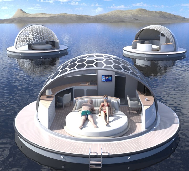 他們設計了一個未來主義的海上漂浮酒店套房,跟游艇一樣可以充分享受大海帶給人的放松和愜意,卻又比游艇更舒服、更適合居住。