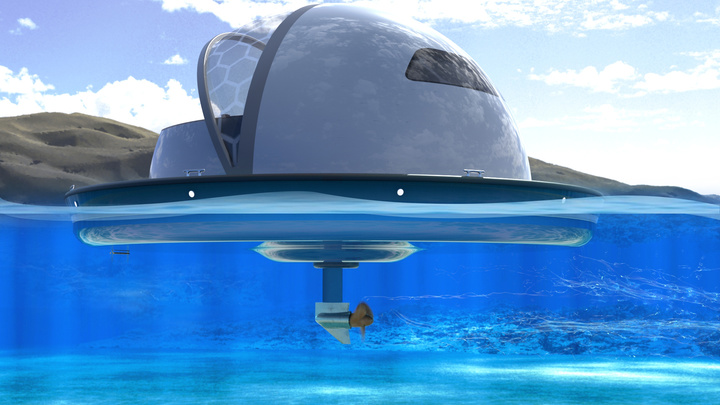 整體設計理念是 UFO 的圓形駕駛艙,只是這個‘UFO’不是在空中盤旋,而是漂浮在水面上。