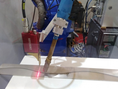 機(jī)器人尋位跟蹤焊接系統(tǒng)其原理是:焊槍前端增加了激光焊縫跟蹤器,可在線實時檢測跟蹤多種焊縫;據(jù)說可以使焊槍處于理想位置,補(bǔ)償生產(chǎn)過程中,因為產(chǎn)品外形尺寸公差,引起的焊縫不規(guī)則,不穩(wěn)定的異常現(xiàn)象,確保焊縫質(zhì)量。