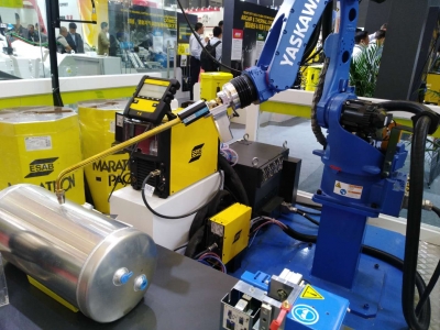 最后鎮(zhèn)樓的安川首鋼,他們是以弧焊工藝為主打的,也是秀了一把肌肉;