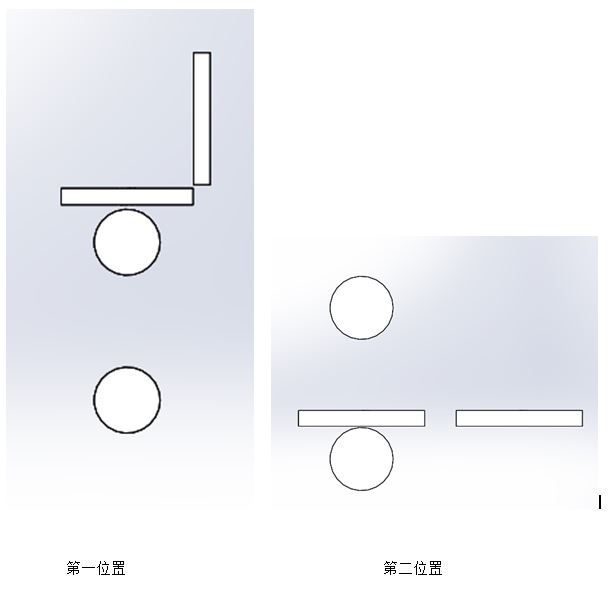 兩塊板子從上方圓柱移到下方圓柱時(shí),兩板位置變化如圖,請問如何設(shè)置連桿可行? 謝謝。
