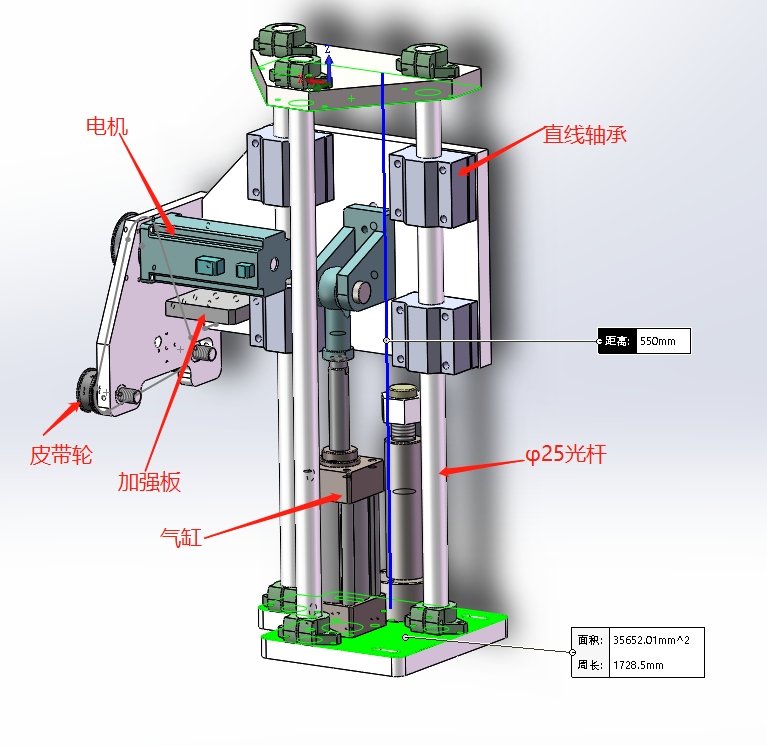 在電機那里再加筋是沒什么效果的,換成直線導軌才是最有效的,產生震動的根本原因就直線軸承的間隙太了和電機轉動產生的震動, 你這個機構沒有什么剛性可言 |
