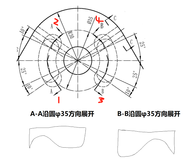 主要看因為1和3這兩個地方有圓弧,屬于光順邊! |