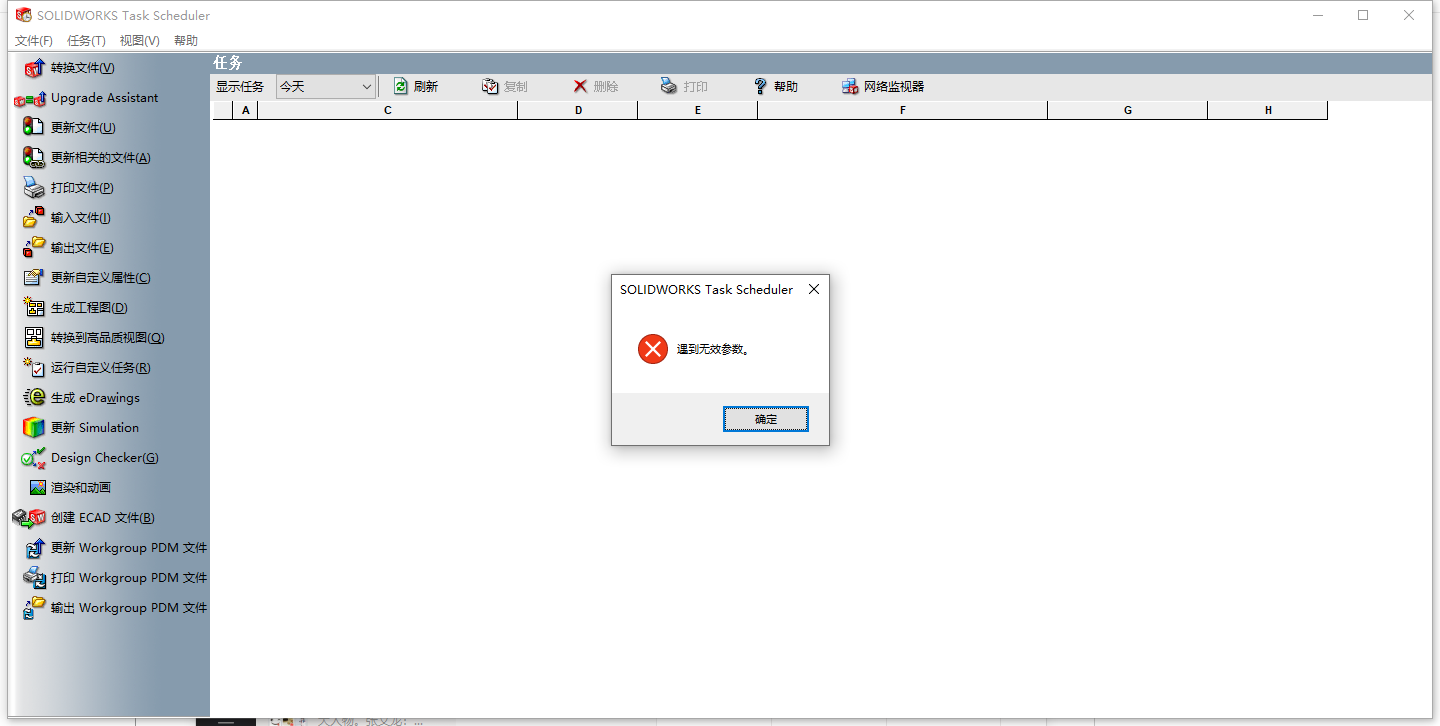 正文摘要:新買電腦安裝的Solidworks 2016.使用Solidworks Task工具批量轉格式,添加一個任務后,任務欄不顯示,也添加不了其它任務,甚至點任何地方都是這個彈框。但是第一個任務在運行(轉格式成功率也變得相當低)。之后把S ... |
