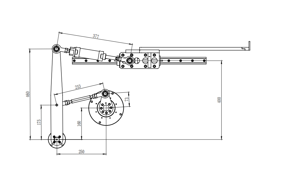 hehuoren666 發表于 2020-3-16 15:30 重新看了一下,確實是我看圖不認真的問題,盲目提問;不過朋友,你說法有些過了。 樓主這個圖應該是右下角圓盤為動力源; 首先通過175、253、250、73、160這幾個數據算出左側搖桿角度與動力源運動的關系(可能還要分區間),得出一個公式; 然后通過左側搖桿角度算出滑塊位置,得出第二個公式(最上面的是雙活塞桿杠吧,在這個機構里就是一個長度固定的連桿); 將第一個公式代入第二個公式就能得出動力源與滑塊的位置關系,也就是相應公式了。 這個公式會比較復雜,不過估計跟樓主期望的勻速運動有點差距,我正弦余弦切換這塊學的不好,就不獻丑了 |