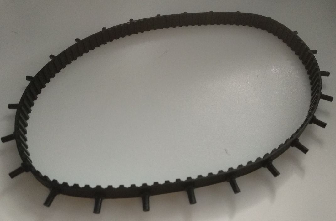 凸起圓柱起什么作用?很少見到這種同步帶。 不知道論壇里有無做橡膠件的沒? |