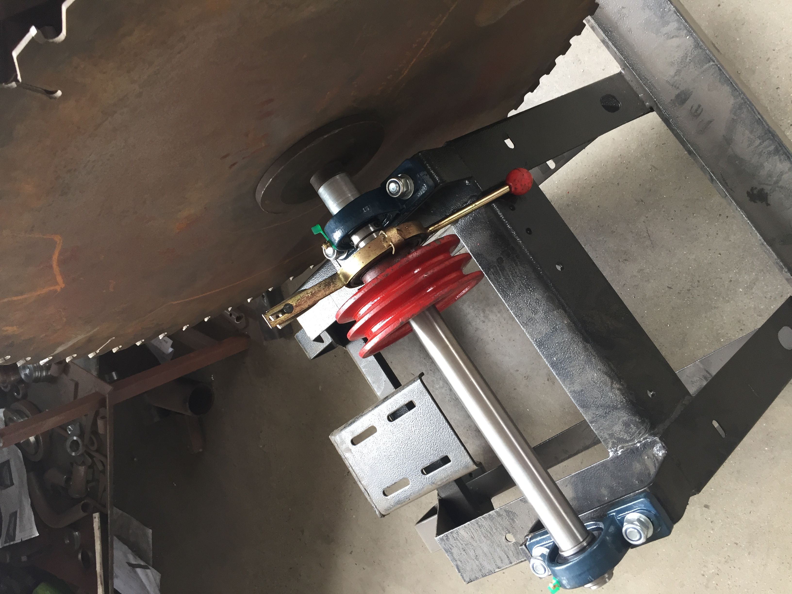 正文摘要:小弟之前發(fā)過一帖,詢問如圖中的PTO鋸床上如何加裝急停裝置,最好是純機械實現(xiàn)。現(xiàn)在實物組裝完了,我找了個手動離合器加了上去,現(xiàn)在離合也就是中斷動力的目的實現(xiàn)了,但是動力中斷后,鋸片由于有慣性會繼續(xù)轉(zhuǎn)動, ... |
