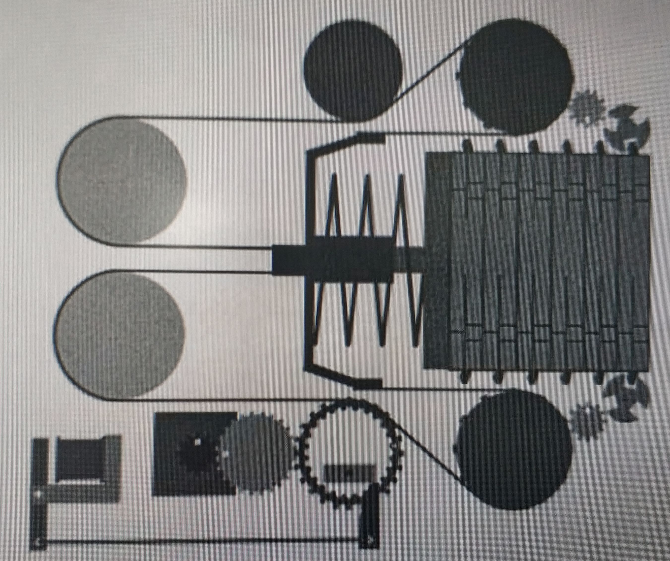 直接豎直疊放在一起,電機+減速機+連桿+滑板,推最底一件,速度由電機和減速機控制,不要太快,不然像打槍一樣。 |