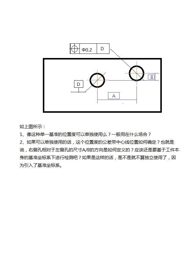 你這個光有D, 無法精確確定孔的位置。A, 和B的尺寸在測量時如何給定他們的方向? |