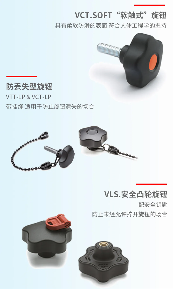 正文摘要:緊固元件往往需要連續重復操作,因此緊固旋扭需要良好的人體工程學設計,并保障安全的抓握,以確保同時兼顧可靠的夾緊動作和舒適的操作手感。 今天為大家介紹Elesa+Ganter特色緊固旋鈕。 ... |