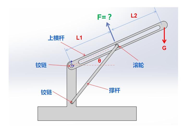 不可能緩慢下降啊,不受阻力D的會直接下降到一個鎖住的狀態或者地面上,除非給撐桿和鉸鏈那根桿之間搞個拉簧之類的這樣才可以根據拉簧力、G、力臂算F |