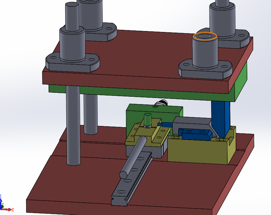 譬如朝露 發表于 2020-8-8 19:42 不恏意思,周天沒上帖子,那個零件安裝在活動的導軌夾具上(夾具是那個綠色的柱子),沖壓完成 在退回工作為進行換料裝料,就是小鋼管材料沖進去0.2mm的坑 |