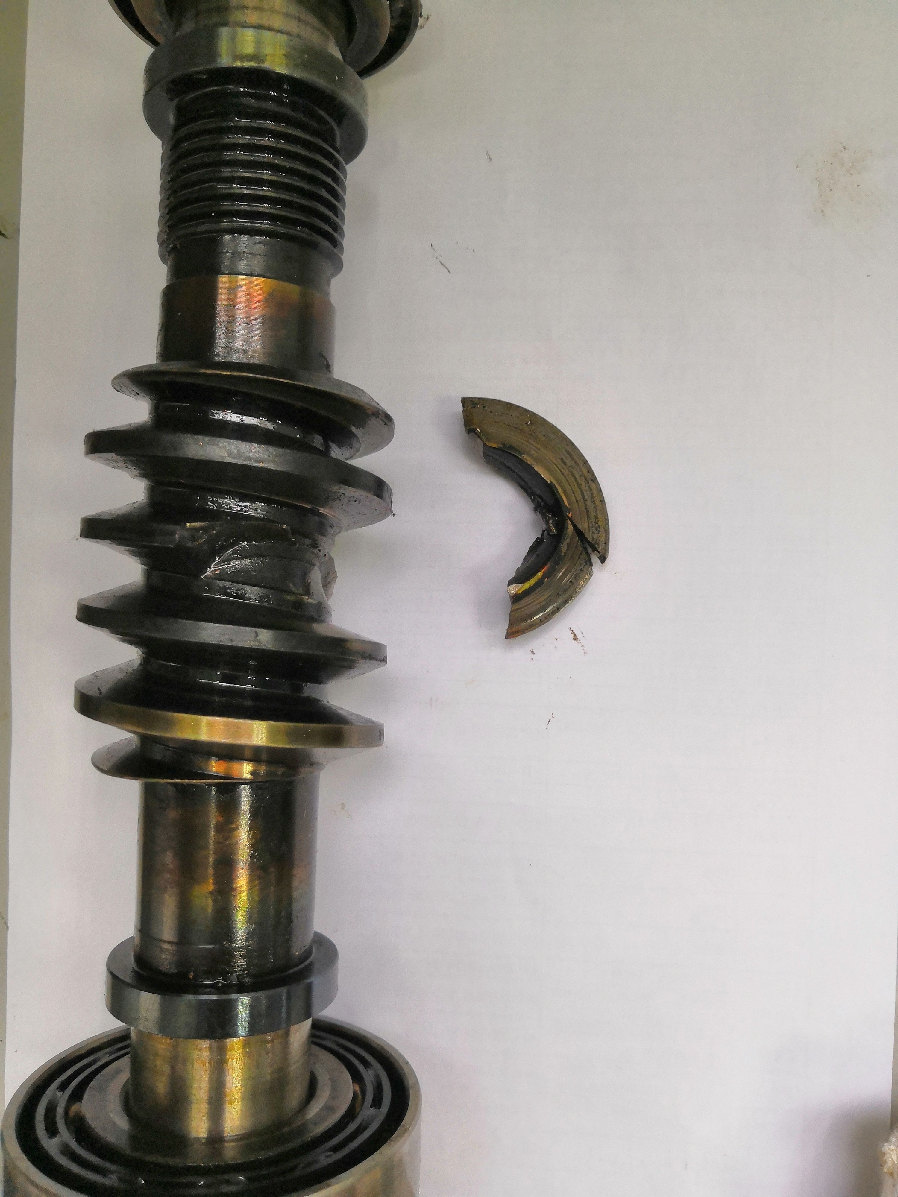 這個明顯是載荷過大,塑形變形然后沒有潤滑,直接掰斷。為什么非要用蝸輪減速機?需要自鎖嗎?斷裂發生的時機? |