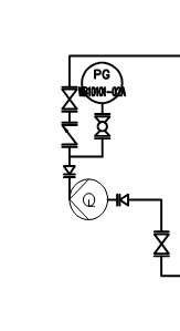 左邊豎向: 截止閥,單向止回閥,大小頭(異徑管),法蘭; 右邊豎向:就地壓力表,儀表閥門; 橫向:法蘭,大小頭(異徑管),截止閥;最左端的符號不認識,需要看流程圖的圖例 |