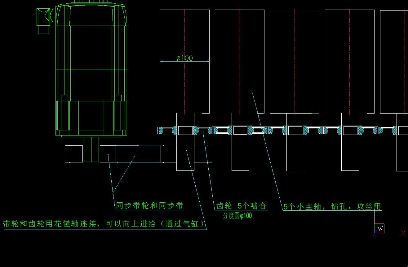 兄弟,你這是要做多個(gè)機(jī)械主軸用來(lái)鉆孔吧。 首先,電動(dòng)傳動(dòng)放在中間那個(gè)主軸上,因?yàn)榉旁谝粋?cè)由于傳動(dòng)效率的原因,整體效率比放在中間的低很多; 2.機(jī)械主軸端面與徑向跳動(dòng)0.005,你看一下你們加工和裝配是否能達(dá)到,達(dá)不到的話(huà)鉆頭旋轉(zhuǎn)會(huì)甩頭,也會(huì)經(jīng)常斷,加工質(zhì)量還不好; 3.鉆頭裝卡,看看采用什么方式ER接頭或是搖臂鉆的莫式錐,還是手電鉆的卡頭。我建議ER,因?yàn)榉€(wěn)定精度相對(duì)高換鉆頭也方便。 3.攻絲,選好了卡頭,也就意味著屬于剛性攻絲了,因?yàn)槿嵝詩(shī)A頭不好裝了。剛性攻絲你就別想了,容易斷絲錐。 4.齒輪潤(rùn)滑方式。 大體建議網(wǎng)上找找現(xiàn)成的主軸買(mǎi)來(lái)用,不建議自己做,成本太高還不穩(wěn)定 |