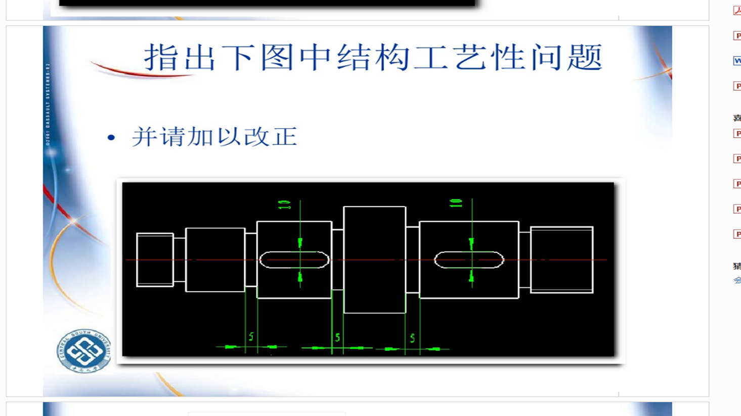 軸臺階處的圓角、軸肩的倒角;右邊的鍵槽那樣設計,平鍵安裝帶來困難;裝軸承地方需要同軸度,端面的圓跳動,外螺紋倒角等。 |