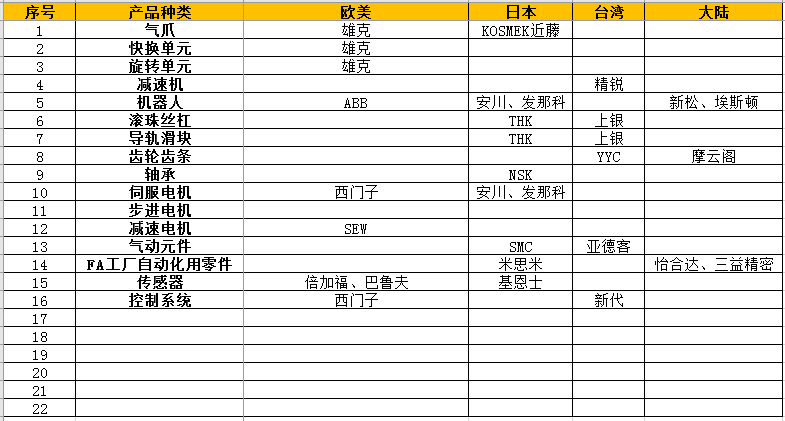 想自己搞點什么,你們說弄點什么好呢?表里這些個東西,哪個潛力最大? 另外,如果有知道對應設備知名供應商的,大家給完善一下吧