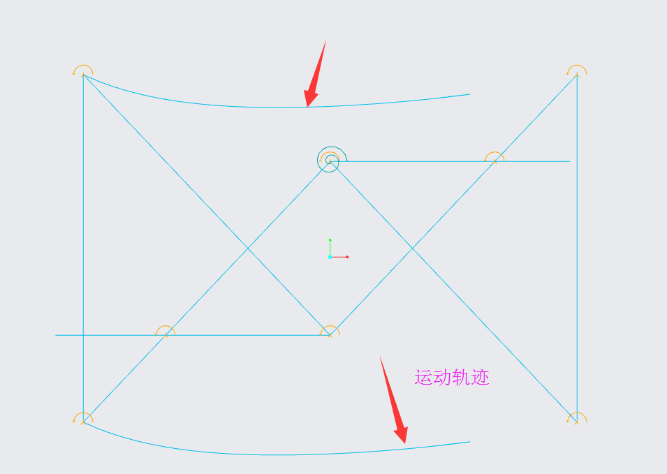 那個運動軌跡就是運動時生成的線,現在唯一的毛病就是不走直線,上下加導軌也試過,加了就把位置限位死了,不能收縮。 |