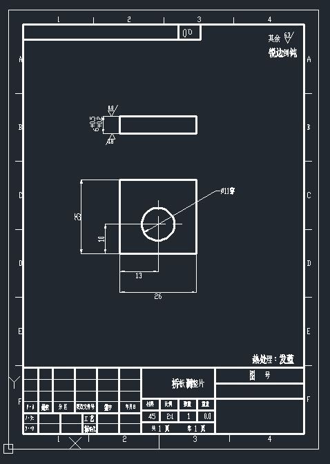 機械菜鳥24K純 發表于 2019-7-25 08:03 這種單件小批量原則上要倒角,畢竟不需要考慮量產工藝,倒角是為了裝配時避免劃傷;可以選擇C0.2或0.5.說一下圖紙上幾個問題,倒鈍,發藍應寫在技術要求里面,發藍不是熱處理;既然作為調整墊片表面粗糙度為什么要選0.8?一般6.3足矣。 |