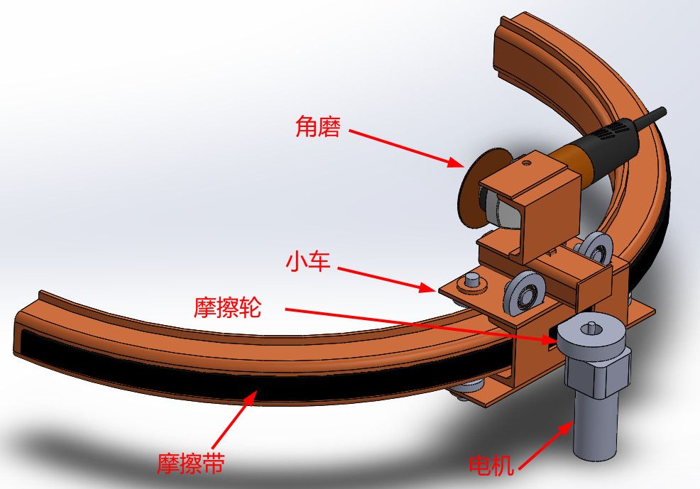 正文摘要:想設(shè)計(jì)如上圖所示的圓弧軌道運(yùn)動(dòng)方案,電機(jī)帶動(dòng)摩擦輪,與安裝在型材彎曲的軌道上做摩擦傳動(dòng),帶動(dòng)小車上的角磨機(jī),進(jìn)行打磨工作! 選摩擦輪和摩擦帶,是考慮到性價(jià)比高,這種方案可行么? 我還考慮用齒形同步 ... |