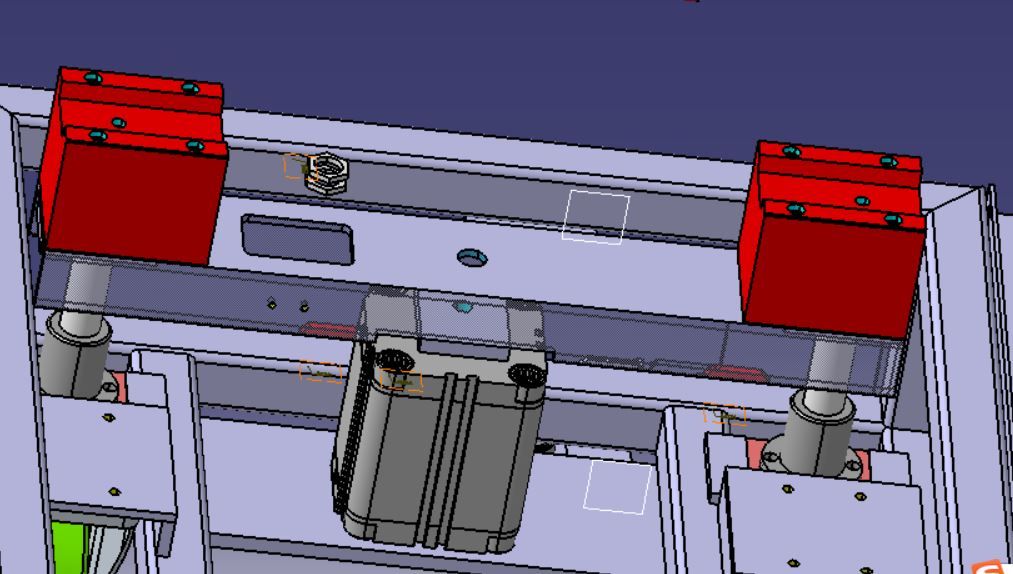 頂部限位塊安裝板較長,兩個軸加直線軸承無法實現穩定的升降導向,這樣在升降過程中難免會不平和晃動。 建議把軸直徑加粗,并增加直線軸承的導向長度。 |