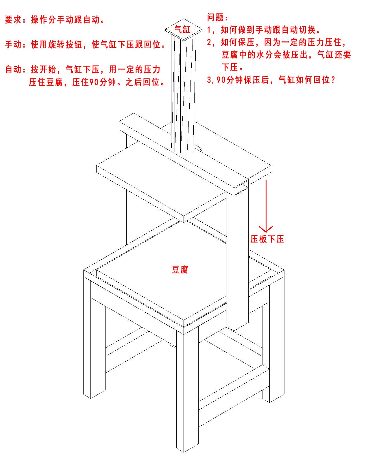 正文摘要:如圖,想自己動手制作氣動壓制豆腐的機器。 沒有氣動方面的知識,網上看了很多相關的資料。還是沒搞懂。 有大神能告訴我,這需要什么氣缸,電池閥,怎么連接嗎? 虛心學習,懇請大神幫幫忙。可付費學習非常感謝。 ... |